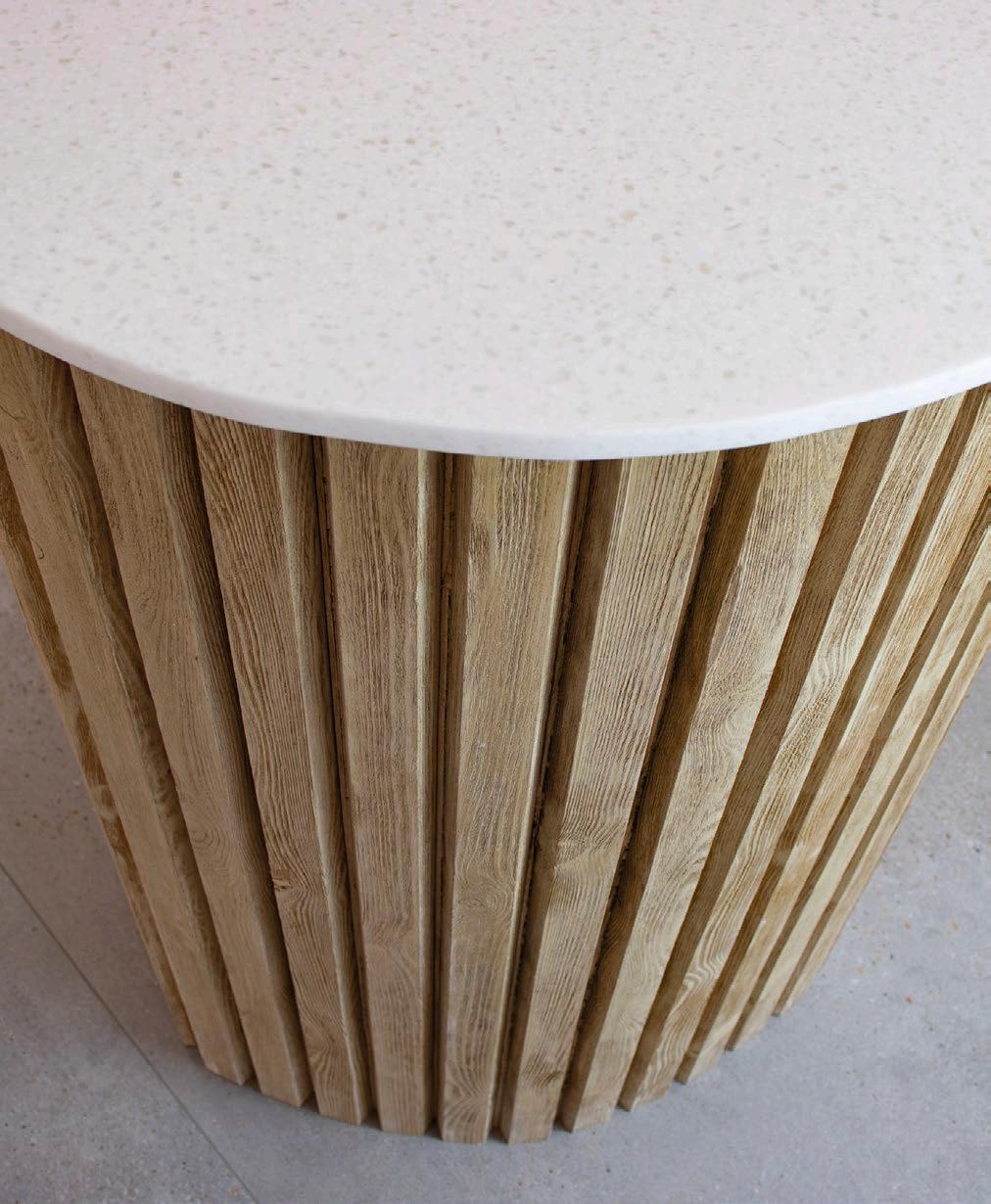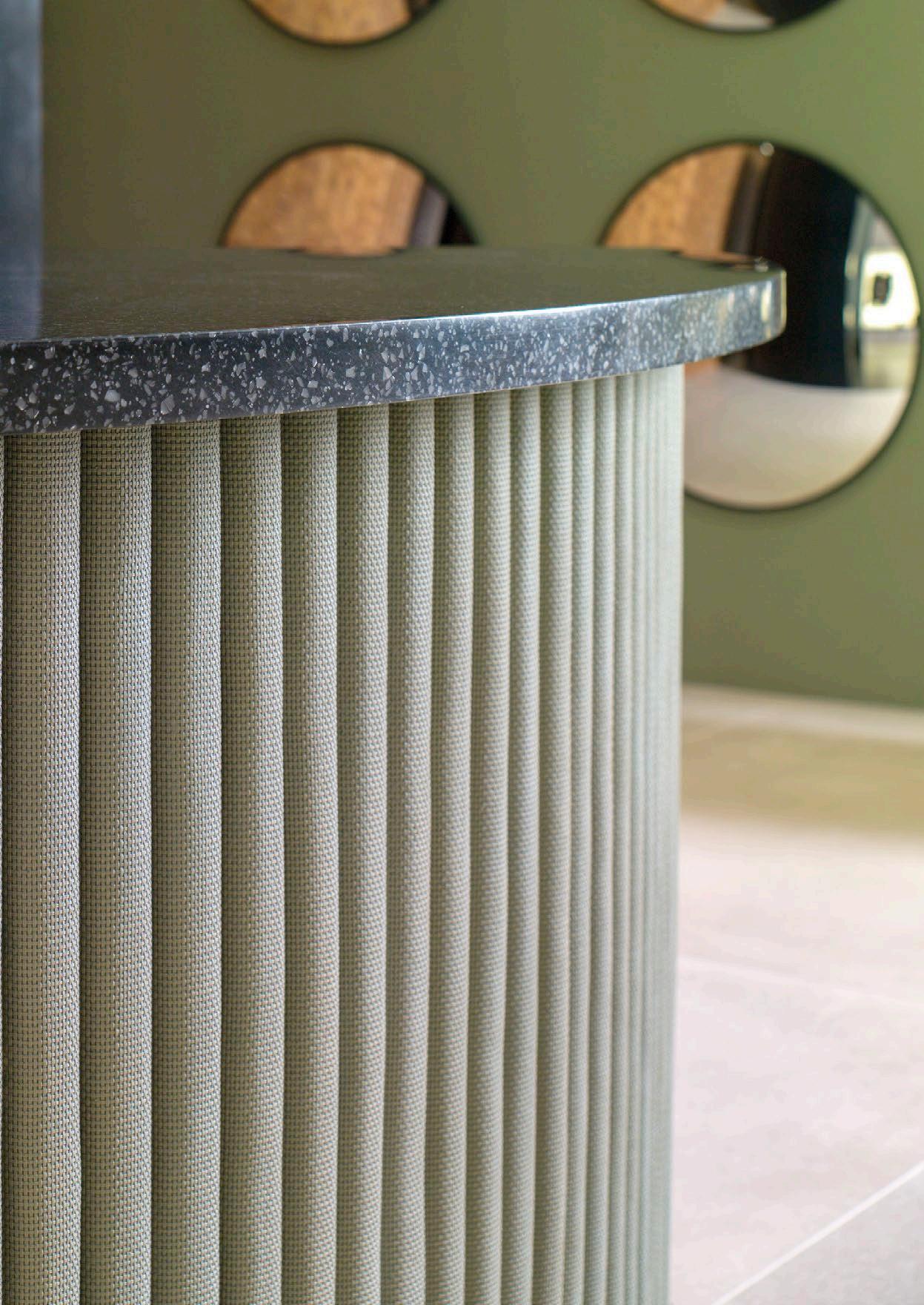 Die Zusammensetzung der Paneele wurde speziell von der Krion Porcelanosa Grupo entwickelt und besteht zu einem Großteil aus Mineralien in Verbindung mit Harzen, die einen Anteil an recyceltem PET enthalten.