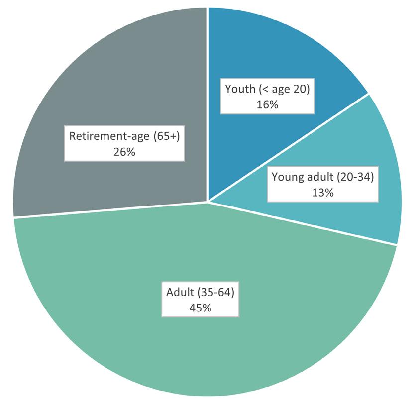 • Amery has a relatively small population of young people; only about 16% of the population is considered youth (less than 20 years old) compared to 71% of the population over the age of 35.