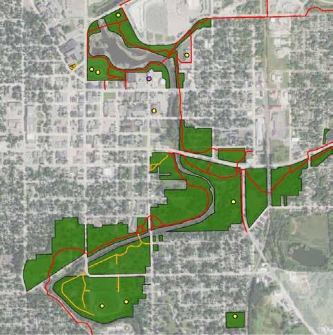 While parks, forests and trails provide opportunities to improve the health of residents, they also contribute to the greater ecological health of the City. Parks are often tied together with environmentally sensitive areas such as wetlands, floodplains, surface waters, or significant woodlands which can include trails. These areas provide food and shelter for local wildlife and natural stormwater retention. Individual parks can provide important “rooms” of natural resource activity; however, they become even more functional when they can be linked together by environmental corridors, or “hallways.” Wildlife, plants, and water all depend on the ability to move freely within the environment from room to room.