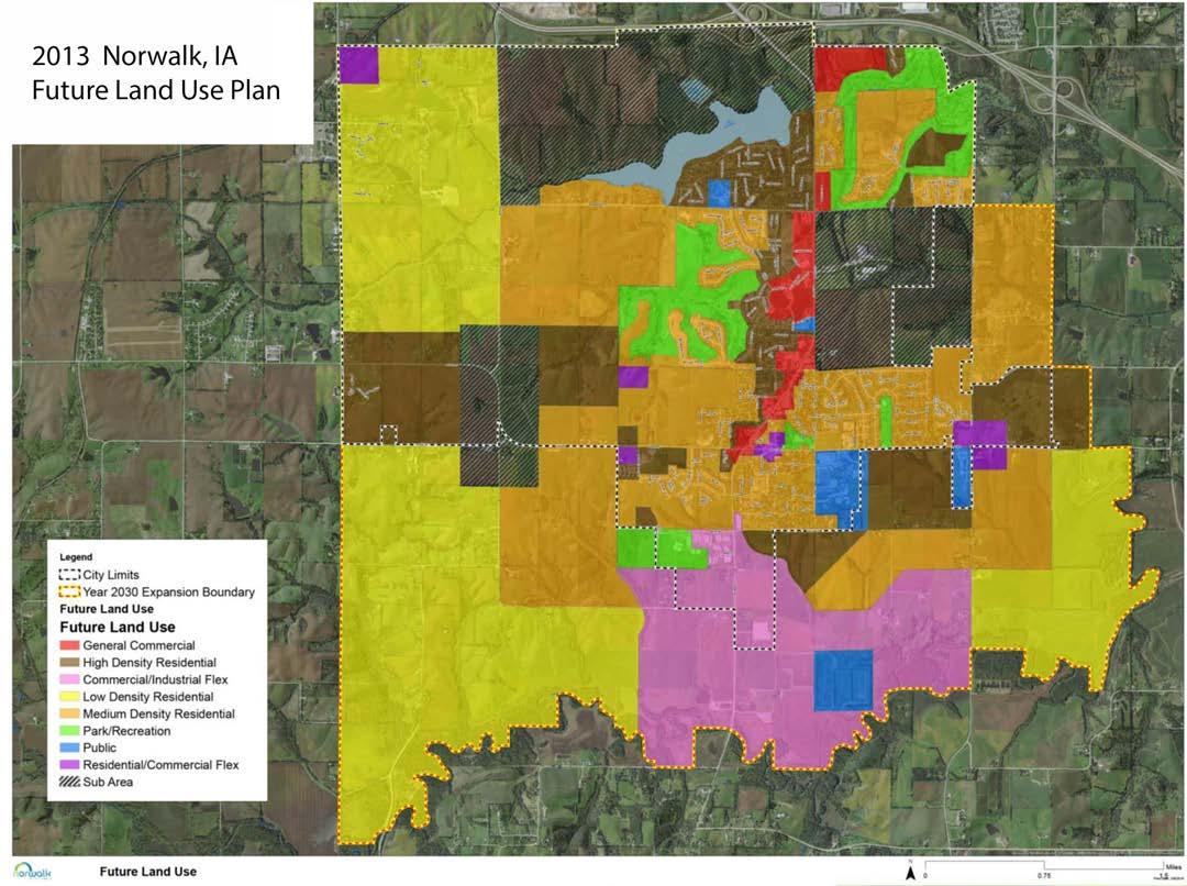 The Comprehensive Plan created for Norwalk in 2013 was designed to promote orderly growth and development for the community, as well as provide policy guidelines to enable citizens and elected officials to make informed decisions about the future of the community. The overarching purpose and components of the plan are listed below: