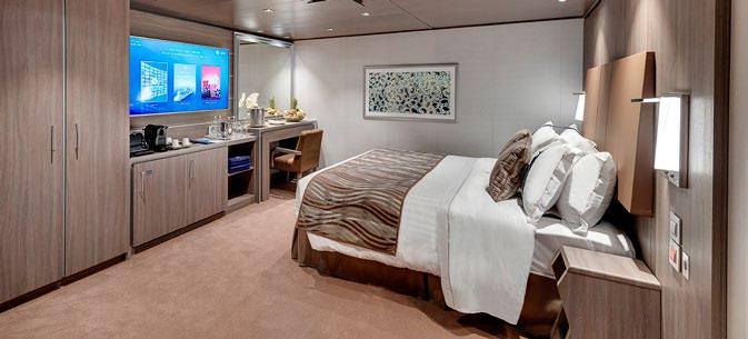 Chaque Suite Royale dispose d’un salon séparé et de tout le confort attendu d’un hébergement premium. Et pour un luxe sans compromis, les Suites Royales à bord de nos navires les plus récents ont leur propre balcon avec bain à remous privé et un coin repas sur la terrasse, tandis que les aménagements intérieurs comprennent un réfrigérateur et un bar.