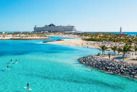 La nouvelle île privée de MSC Cruises est née d'un engagement fort en faveur de la restauration des ressources naturelles et de la conservation des récifs coralliens et de la vie marine. Nichée dans une oasis de tranquillité au nord-ouest d'Ocean Cay, elle dispose d'une plage exclusive réservée aux hôtes du MSC Yacht Club, comprenant des transats et des cabanas ainsi qu'un service de majordome.