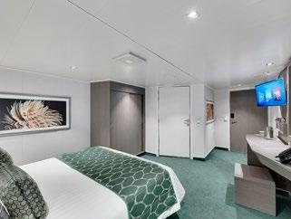 • Tutte le cabine sono dotate di letto matrimoniale convertibile in due letti singoli eccetto YC3. Alcune cabine per ospiti con disabilità o a mobilità ridotta hanno due letti singoli non convertibili in letto matrimoniale.