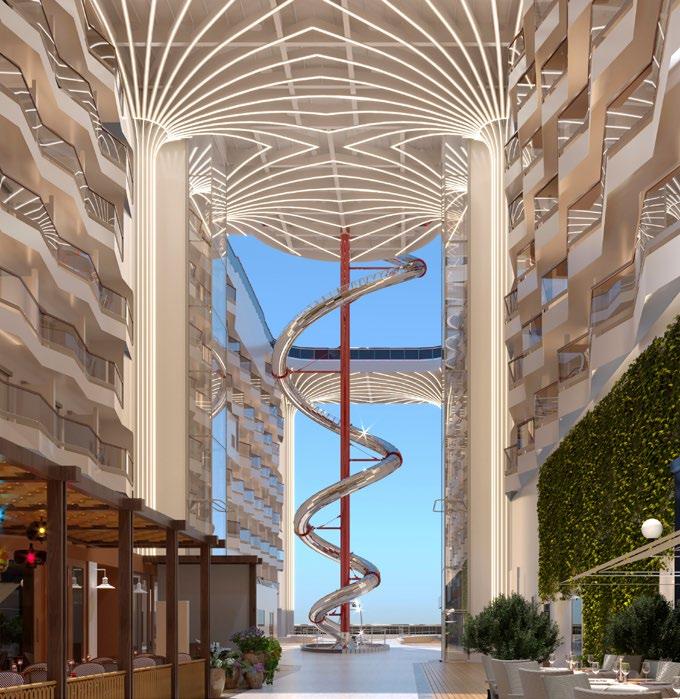 Il cuore della Promenade è il più lungo scivolo architettonico del mare, alto 11 ponti e in acciaio, ridefinisce i confini della creatività e offre agli ospiti un modo divertente e in grande stile per raggiungere i ponti inferiori.