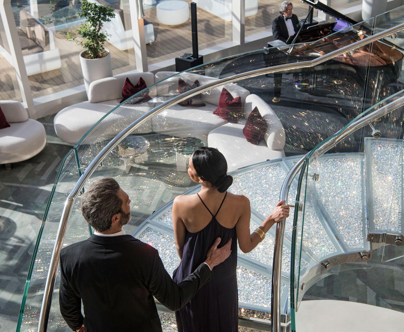 Une équipe dévouée est attentive à vos moindres besoins, de jour comme de nuit. Votre majordome vous accompagne lors de votre embarquement prioritaire et peut, si vous le souhaitez, défaire vos valises. Un concierge reste à votre entière disposition pour organiser vos activités, comme, par exemple, une séance de shopping privative ou une excursion sur mesure. Nos chefs élaborent une expérience