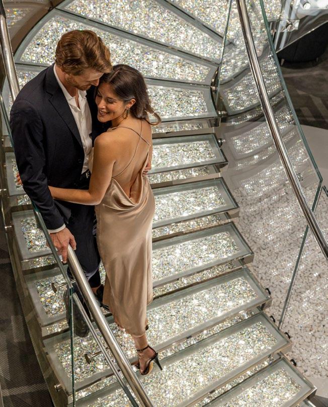 ¿Todos acomodados? Es hora de echar un vistazo al programa del día para saber qué puedes hacer a bordo. Si es la noche de gala, visita el salón de belleza o la barbería. Siéntete único mientras bajas la escalera de Swarovski para comenzar tu viaje con estilo. Por último, no te olvides de pedir el servicio de habitaciones para un desayuno relajado en tu camarote.