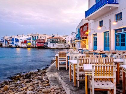 De Ferrari con su icónica fuente. Sumérgete en las maravillas de la inmortal Venecia. Maravíllate con el espectacular Santorini y sus famosos acantilados y restos arqueológicos. Relájate en Mikonos, adorada por sus idílicos