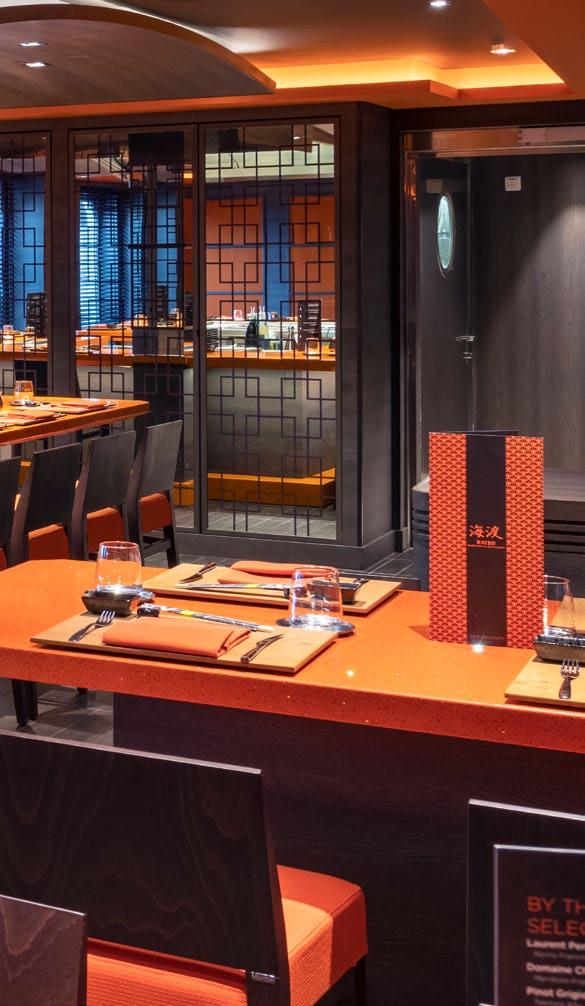 elegir entre una impresionante variedad internacional de maravillosos vinos. El viaje continúa con la cocina vietnamita que combina tradición e innovación en el restaurante Indochino y refinadas especialidades japonesas en el restaurante Kaito Teppanyaki. Por supuesto, la gama de