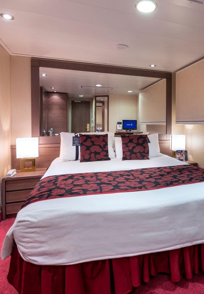 • Todos los camarotes cuentan con una cama doble convertible en dos camas individuales, salvo los camarotes para pasajeros con discapacidad o movilidad reducida (H); excepto los camarotes 15025 y 15023.