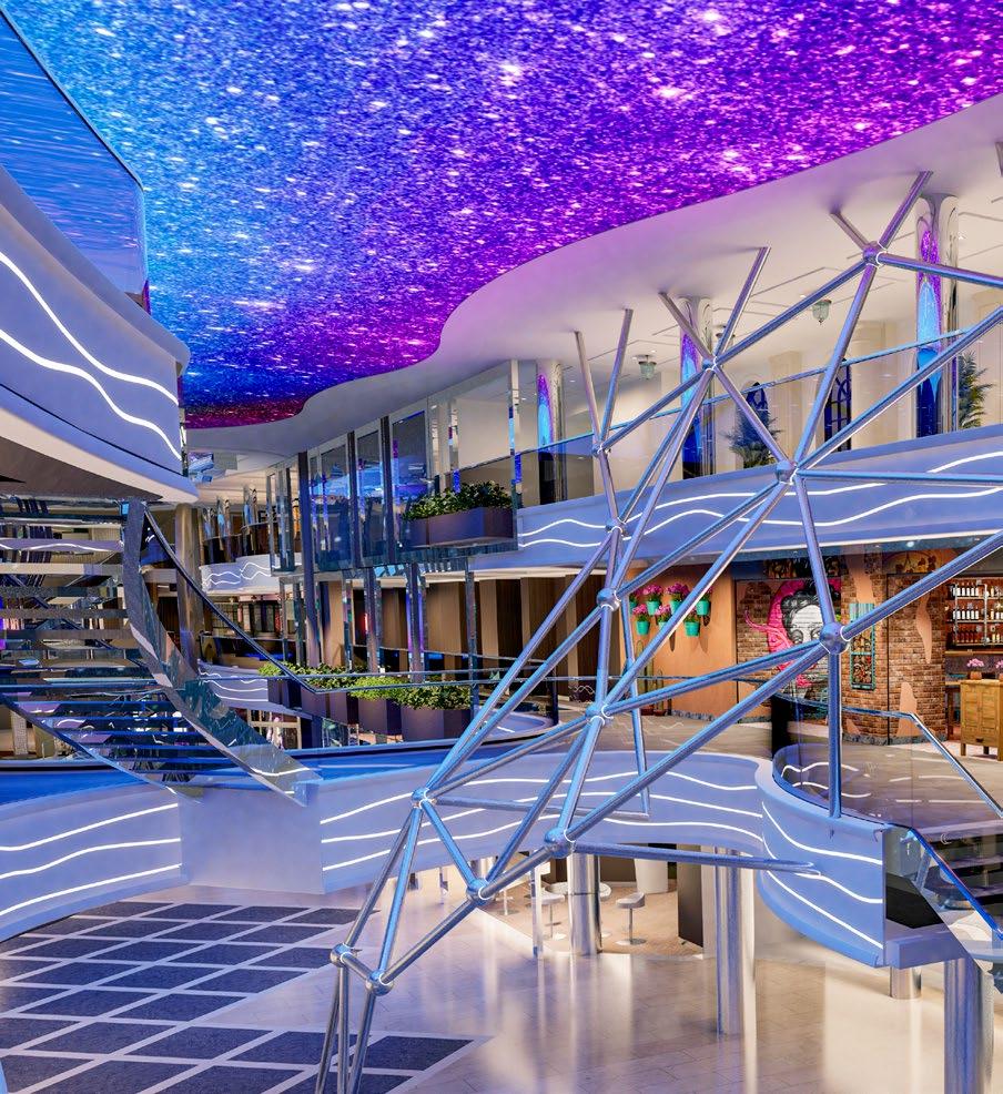 Los recintos de entretenimiento a bordo de MSC World Europa están diseñados para sumergir a los pasajeros en una serie de mundos extremadamente distintos entre sí. Quien quiera sorprenderse, asombrarse o simplemente entretenerse no tiene más que contemplar la impresionante World Galleria , un tranquilo espacio interior compuesto por la emblemática cúpula LED de la cubierta 6 que ofrece un constante festival de animados elementos visuales y música de inmersión, todo ello proyectado en las pantallas gigantes. Por su parte, el World Promenade, ubicado en la cubierta 8, es un viaje de descubrimiento por una ciudad futurista repleta de variedad, posibilidades y emociones, con actuaciones de teatro callejero y pop-up. A cualquier hora del día o de la noche, siempre encontrarás algo que hacer, vivir o descubrir a bordo de MSC World Europa.