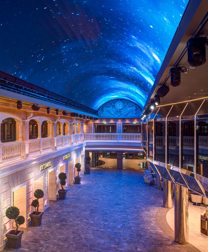 Impresionantes espectáculos visuales iluminan la enorme cúpula LED, formando un telón de fondo sensacional para conciertos, discotecas y fiestas. De hecho, siempre hay algo que hacer en el paseo interior, bajo un espectacular cielo digital.
