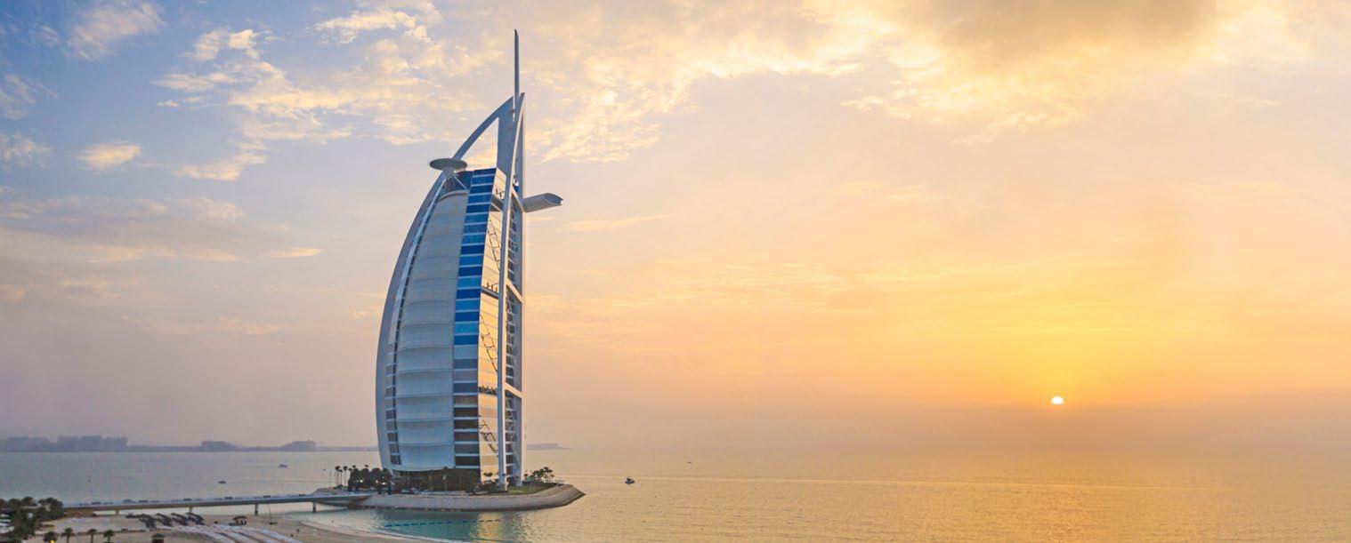 Experience the enchanting elixir of ancient and modern Arabian magic: Dubai and Abu Dhabi present a dizzying mix of age-old traditions and ultramodern vision. You'll marvel at the breathtaking blend of soaring skyscrapers and ancient fortresses, medieval markets and futuristic shopping malls, desert oases and pristine beaches. The contrasts are as surprising as they are spectacular. You can cruise fjord-like waters in a traditional dhow, let aromatic scents guide you to marvellous Bedouin markets, and discover the secrets of the sultans, buried under the sands. Admire Abu Dhabi, with its priceless palaces and aweinspiring modern architecture that has earned it the nickname the “Manhattan of Arabia”. Explore the golden sands and turquoise seas of Dubai, not forgetting the world’s tallest building, its most luxurious hotel and its largest shopping mall. And visit spectacular Sir Bani Yas Island, where you can explore the region’s largest wildlife reserve, enjoy a variety of superb leisure activities and relax in comfort on pristine beaches. Here, the opportunities for unique experiences are endless.