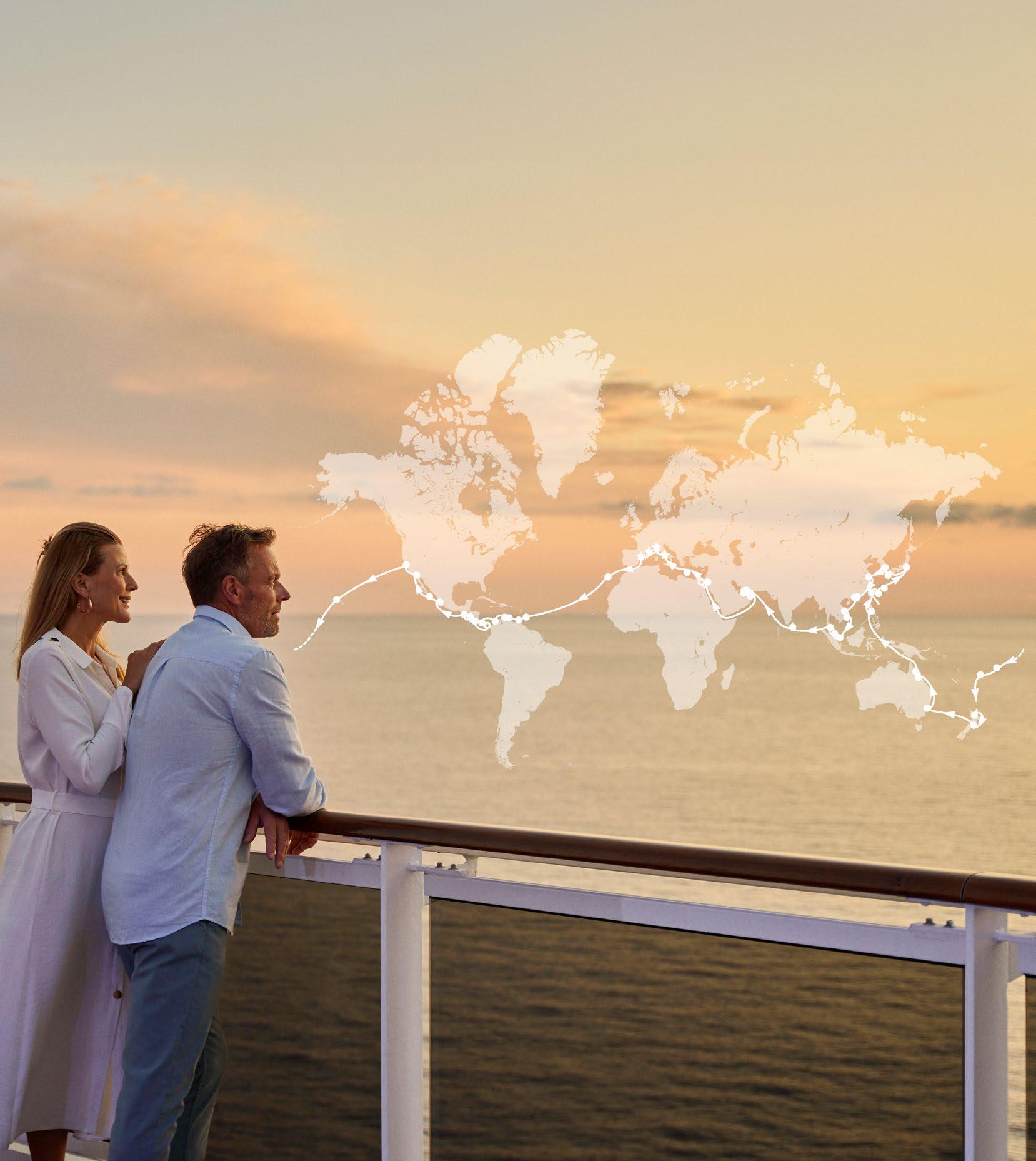 Mientras recorres el mundo, también puedes aprovechar para disfrutar de todo lo que ofrecemos a bordo, comenzando por las comodidades de tu camarote Tendrás océanos de tiempo para saborear la experiencia gastronómica gourmet en los restaurantes y bares del barco, disfrutar del amplio programa de entretenimiento, actividades y eventos inspirados en tus destinos, y relajarte como nunca en las piscinas al aire libre, el gimnasio panorámico y el lujoso spa.