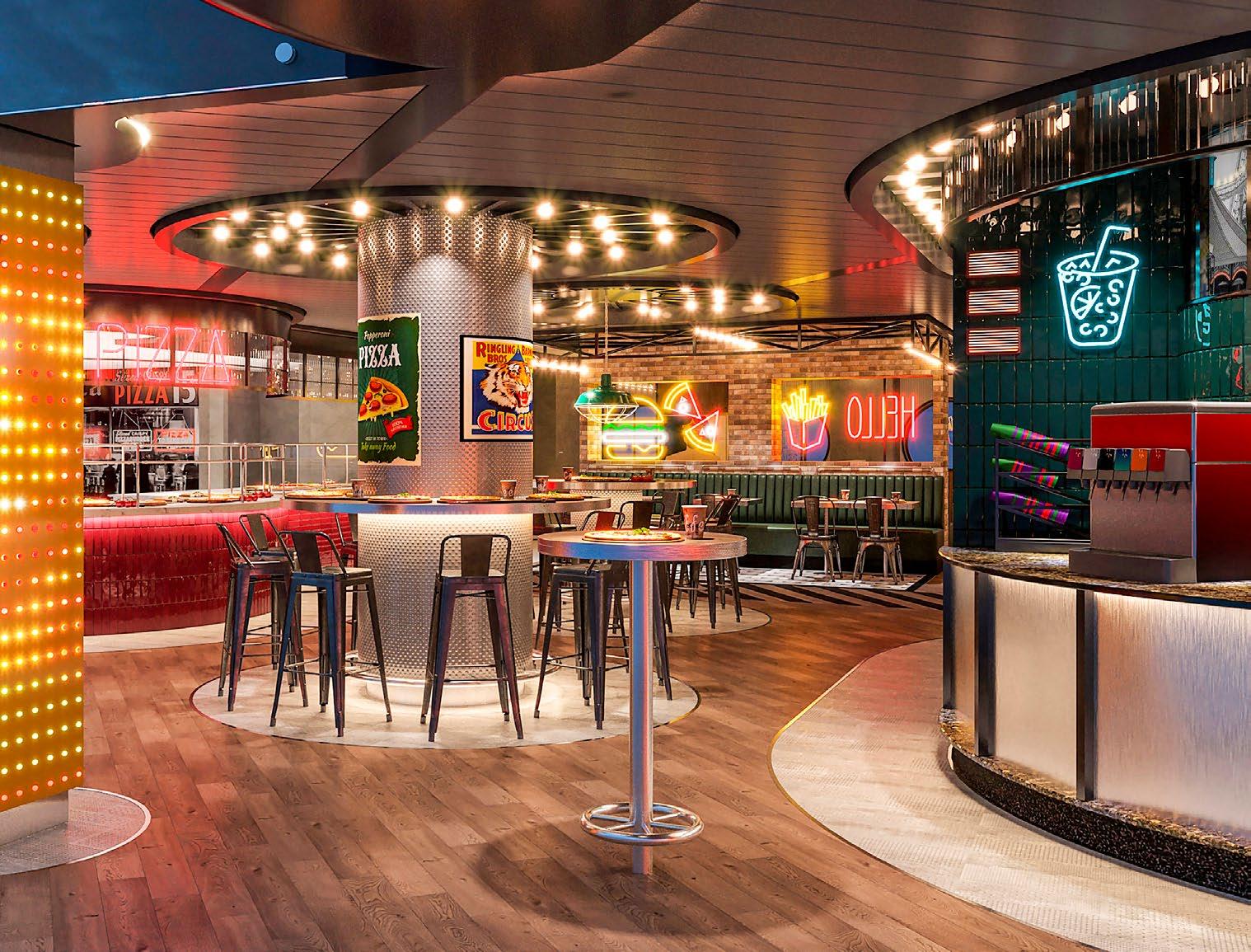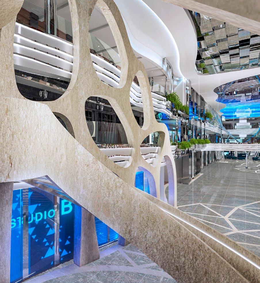 Anyone looking to be amazed, surprised or entertained need look no further than the breathtaking indoor World Galleria Featuring the iconic LED Dome on Deck 6, this tranquil ambient space offers a constant feast of vibrant visuals and immersive music brought to life on the massive screens.