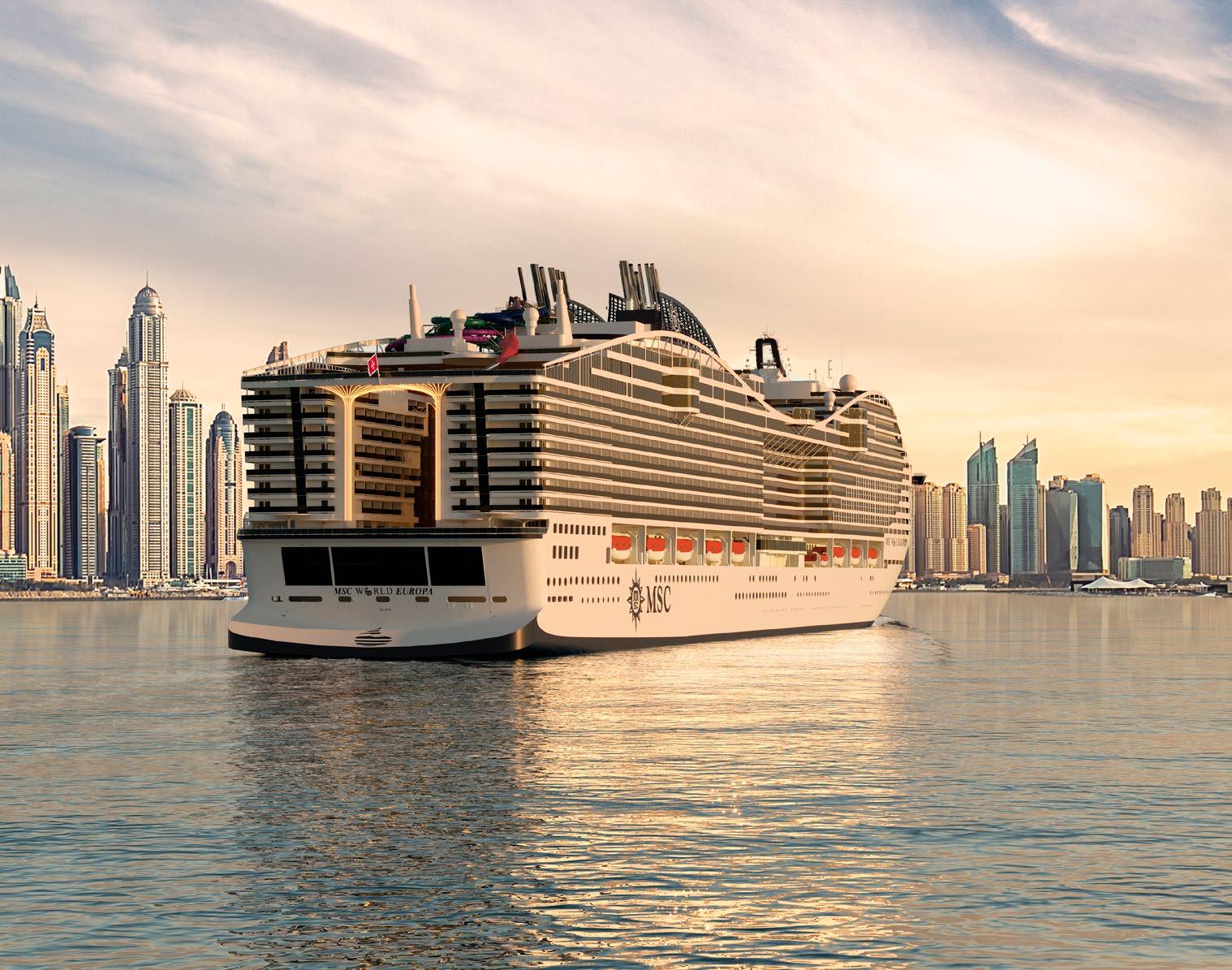 Enter into a world of cruising dreams with MSC World Europa. Choosing from a range of exotic destinations on board our newest ship. During her first year, MSC World Europa will cruise Dubai, Abu Dhabi & Qatar from December 2022 to March 2023. Then join her repositioning itinerary from 25 March 2023 with 18 nights of sheer enjoyment, as MSC World Europa makes her way from the United Arab Emirates through to Jeddah, transiting the Suez Canal and then onto Italy to begin her Mediterranean season from April 2023 through to November 2024.