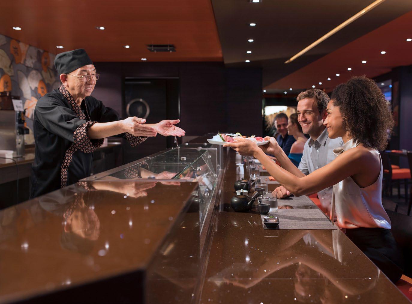 Bereichern Sie Ihr Kreuzfahrterlebnis mit einer kulinarischen Entdeckungsreise durch unsere Spezialitätenrestaurants – vom Butcher’s Cut Steakhouse über das L’Atelier Bistrot mit Kunstgalerie, La Pescaderia, Robatayaki, Ocean Cay Seafood und Indochine Restaurants , bis hin zum Chef’s Garden Kitchen in Zusammenarbeit mit dem MichelinSternekoch Niklas Ekstedt. Zudem erwartet Sie eine fantastische Auswahl an internationalen Kreationen weltberühmter Küchen – darunter Hola! Tacos & Cantina, Sushi Bar und Teppanyaki