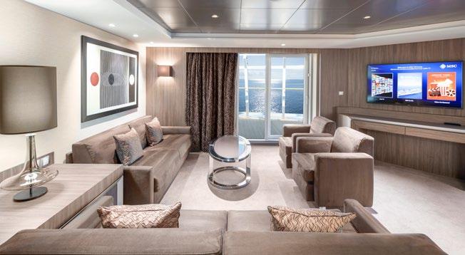 Die MSC World Class verfügt über eine große Auswahl an komfortablen und luxuriösen Kabinen und Suiten, die den Bedürfnissen aller Reisenden gerecht werden. Das einzigartige Y-förmige offene Heck führt zur Außenpromenade mit beeindruckendem Panoramablick auf das Meer.