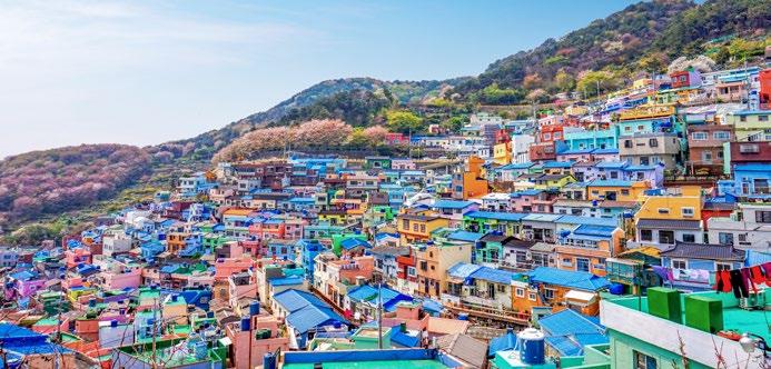 Dieser vierstündige Ausflug führt Sie zuerst ins Gamcheon Kulturviertel, wo Sie bunte Gassen mit Kunstinstallationen und Wandgemälden entdecken. Danach geht es zum Songdo Beach, um den Skywalk zu erkunden, der spektakuläre Ausblicke bietet. Zum Abschluss haben Sie eine Stunde Freizeit auf dem traditionellen Gukje-Markt.