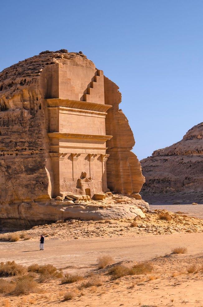 Entdecken Sie über 100 Denkmäler der archäologischen Stätte von Hegra, besuchen Sie die antike Stadt Al’Ula mit ihrer Zitadelle aus dem 10. Jh. und machen Sie ein Selfie vor dem berühmten Elefantenfelsen.