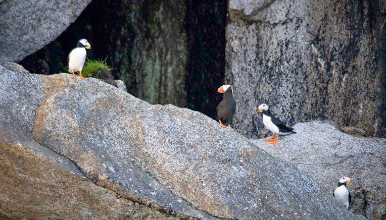 Erleben Sie Sitkas „Triple Crown“ der Tierwelt: Beobachten Sie Seelöwen, Papageientaucher und Adler von Bord eines schnellen Expeditionsschiffs und besuchen Sie das Alaska Raptor Center und die Fortress of the Bear, um Greifvögel und gerettete Bären hautnah zu erleben.