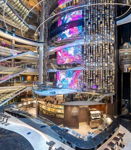 d'architecture de 11 ponts, qui traverse le navire du pont 20 au pont 8. Sans oublier l'incroyable promenade longue de 104 mètres sous notre iconique dôme en LED, plongeant les voyageurs dans un monde animé et futuriste, placé sous le signe du choix, de la variété et de l'amusement. De quoi en prendre plein les yeux, sur un navire unique au monde.