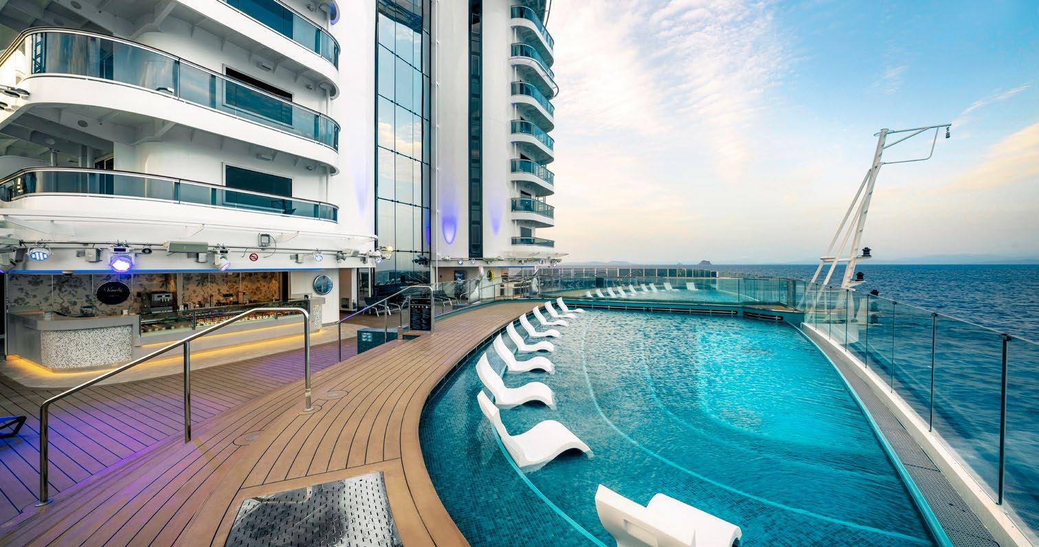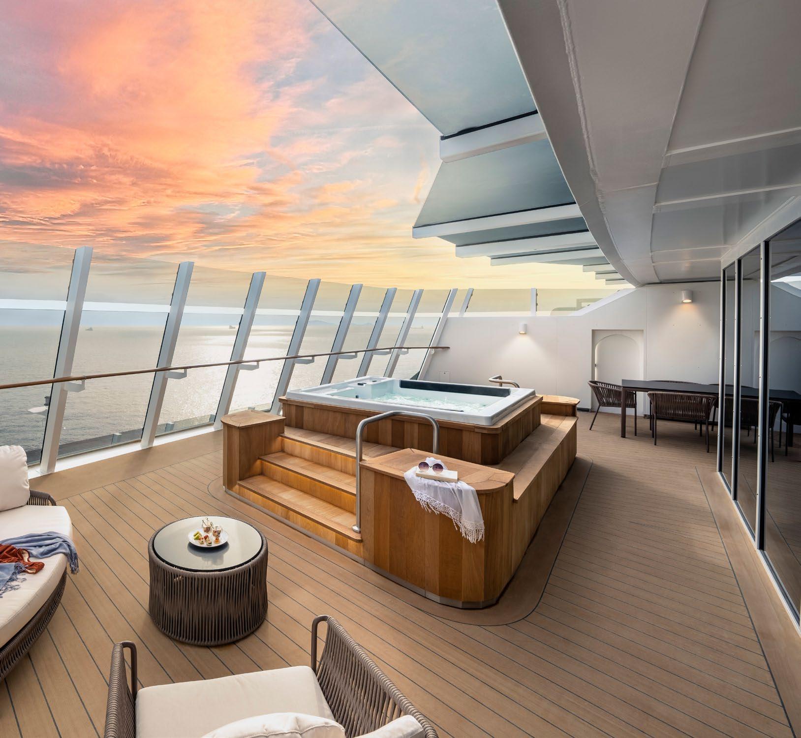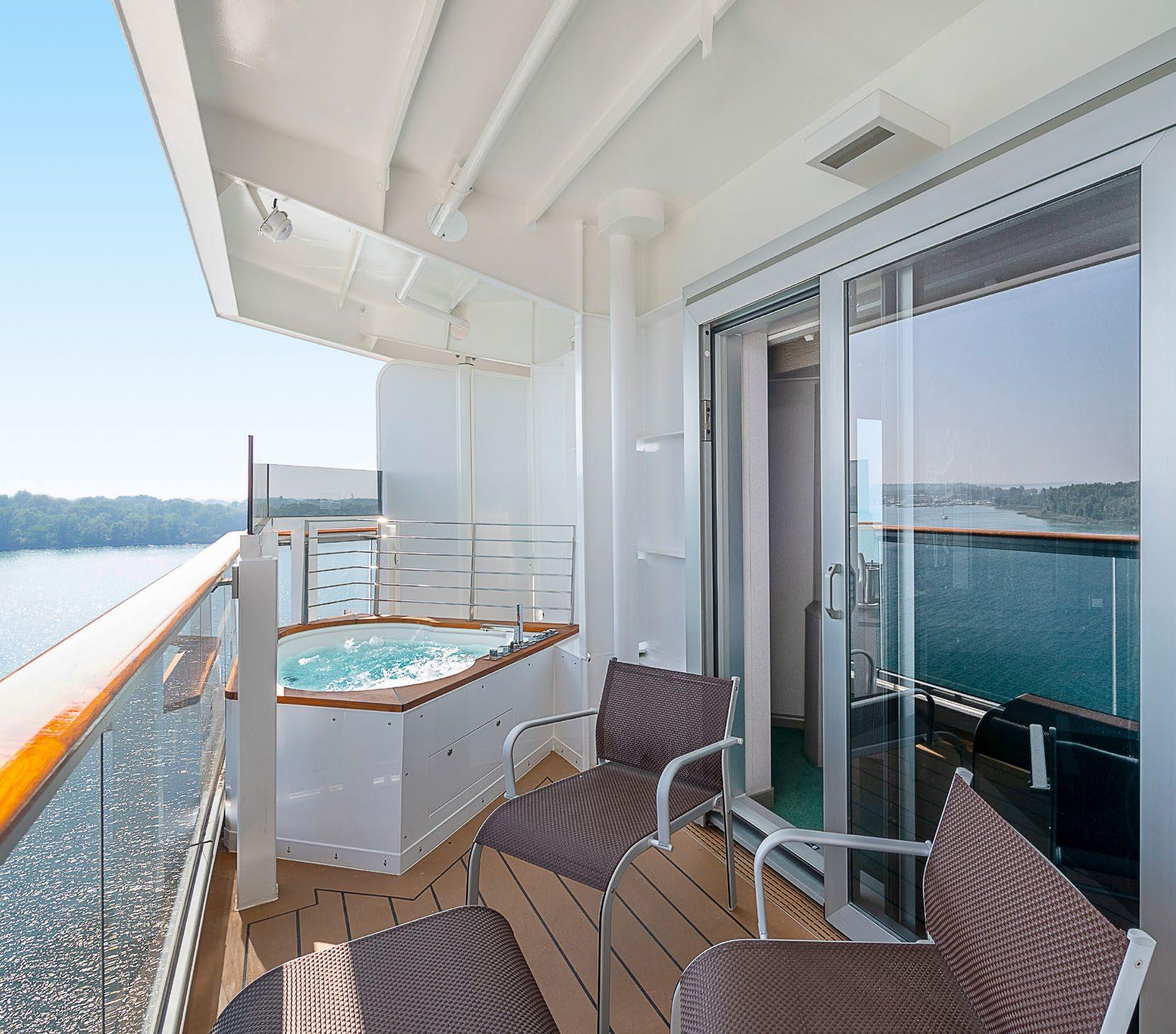 • Thermal area of up to 1,700 m2 (depending on the ship) with saunas, Turkish baths and whirlpools