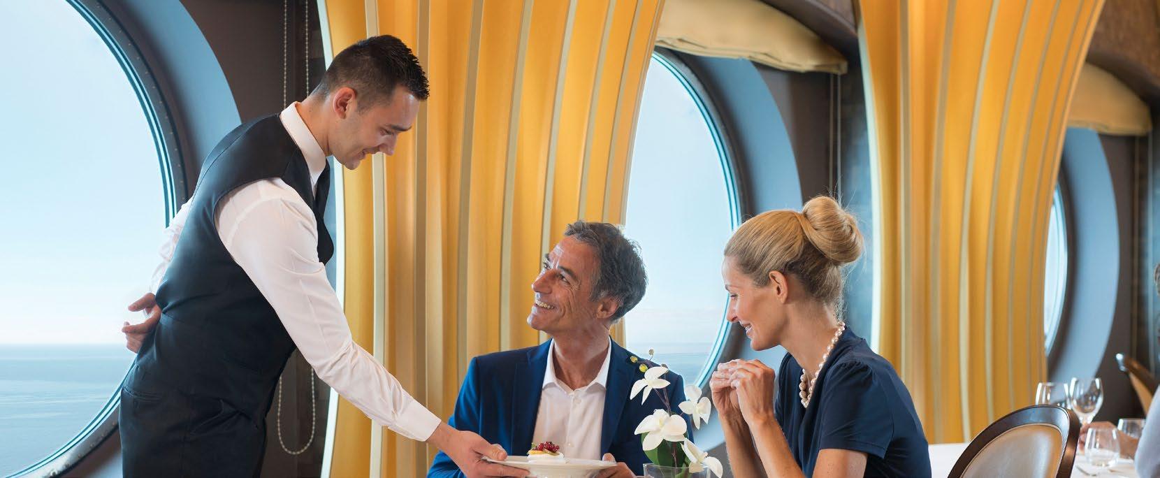 Van gezonde gerechten tot de meest verleidelijke, van internationale tot mediterrane smaken, wij serveren maaltijden die u voor altijd aan uw cruise zullen doen denken.