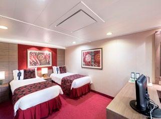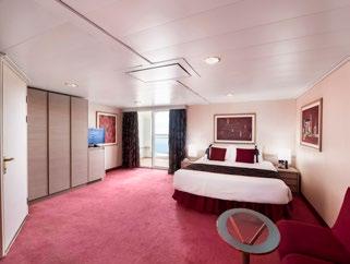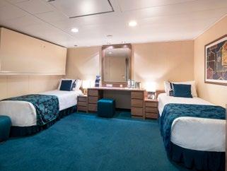 The images are representative only. Size, layout and furniture may vary (within the same cabin category). Cabin size (m2) Balcony size (m2) Deck location Accommodating up to