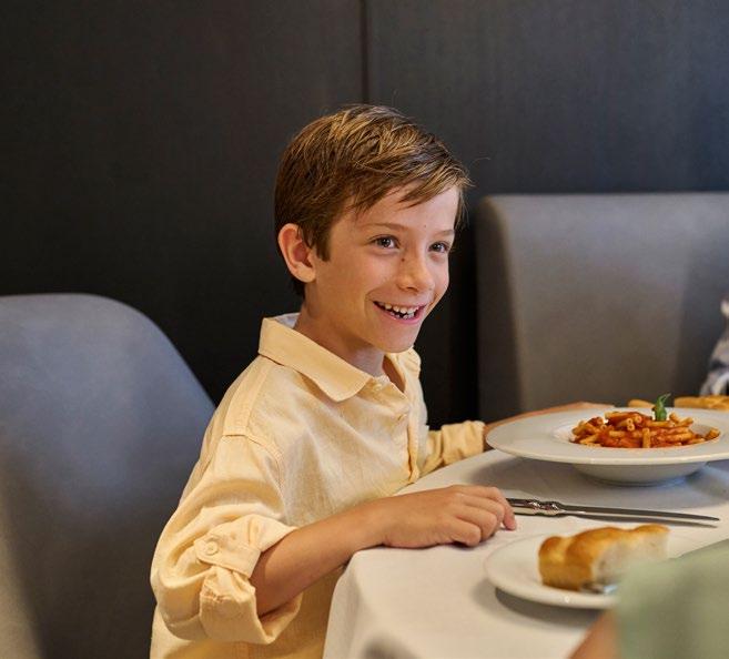 Embarquez pour un voyage autour des saveurs du monde avec vos enfants. MSC Croisières propose un grand choix de spécialités internationales, ainsi que des plats spécialement conçus pour les plus jeunes. Vos enfants préfèrent dîner avec leurs nouveaux amis ? Notre équipe dédiée se fera un plaisir de s'en occuper. Et s'ils sont fatigués après une journée bien remplie, faites-vous livrer un repas directement en cabine.