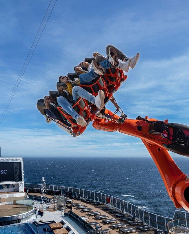 Place au plaisir en famille ! Magasinage, cocktails au bord de la piscine ou toboggan aquatique vertigineux : chacun y trouvera son bonheur. Envie d'une poussée d'adrénaline avec l'attraction Cliffhanger ? Prêt.e à prendre le volant dans le simulateur MSC Formula Racer ? C'est parti ! Et l'aventure continue quand le soleil se couche. Après un savoureux repas à la table du chef, rendez-vous pour un quiz amusant et une soirée festive