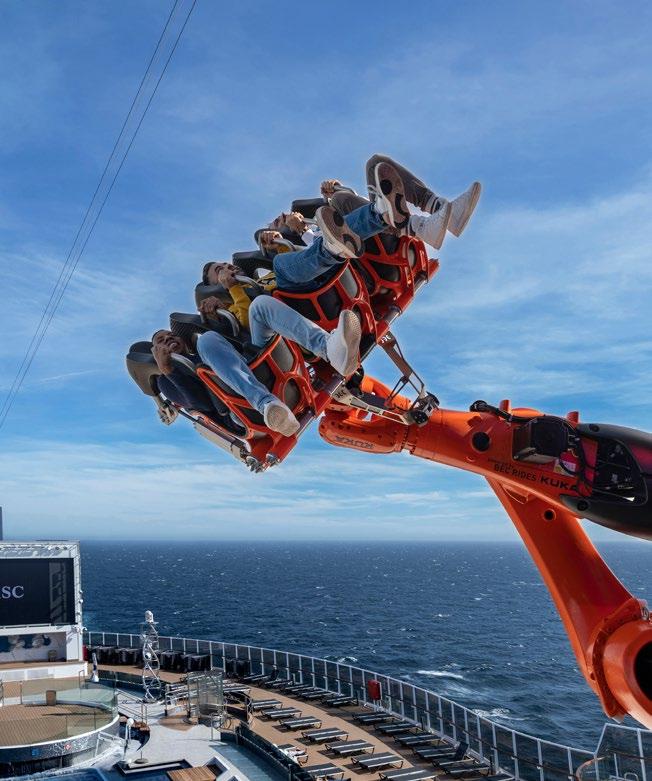 From shopping to sipping cocktails by the pool and whirling down the waterslide, there’s something for all ages. Ready for the adrenaline rush of the RObOtROn rollercoaster? Want to climb in the MSC Formula Racer simulator? Sure! As the sun sets, there’s even more to do. Tonight you are booked in at the chef’s table before heading to a quiz and a party