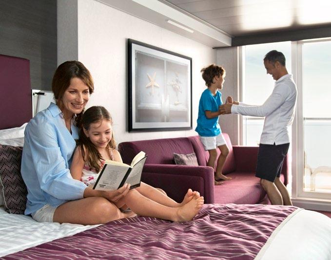 Baumwolle, eine Dorelan Kissenauswahl, eine PanoramaLounge mit raffiniertem Fingerfood sowie ein exklusives Sonnendeck mit Pool und Whirlpool für noch mehr Privatsphäre. Besonders die MSC Seashore beeindruckt mit 41 neuen Deluxe Grand Suiten mit begehbaren Kleiderschränken