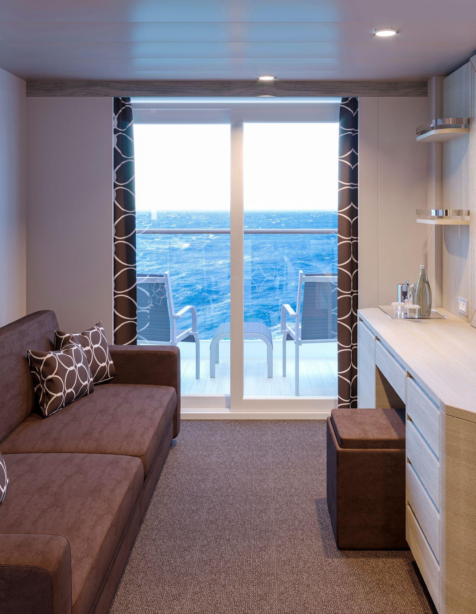 cabine de 18 m2 ; balcon de 17-18,4 m2 ; pont 16