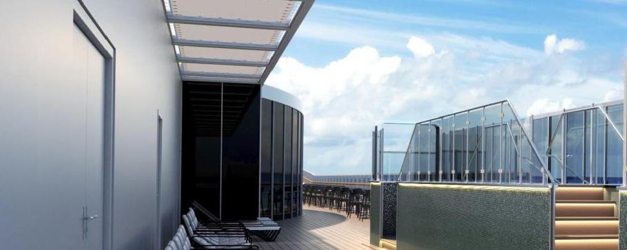Duas hidromassagens de borda infinita - uma em cada lado do navio - representam outra emocionante inovação em termos de relaxamento. Localizadas na promenade externa, cada hidromassagem oferece 20 assentos voltados para o mar com jatos d’água calmantes, para garantir o máximo relaxamento com impressionantes vistas do mar.