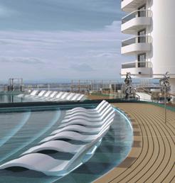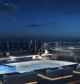 Der private Poolbereich und das Sonnendeck sind großzügiger als je zuvor. Er wurde auf 2.000m² vergrößert und bietet einen größeren privaten Pool und einen neuen PanoramaWhirlpool mit acht Plätzen und individuellen Düsen sowie einen Standard-Whirlpool