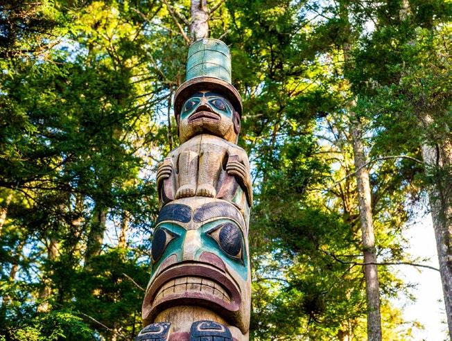 Entdecken Sie das Erbe der Tlingit im Saxman Native Village: Gesänge, Tänze in bunter Tracht, Kanubau und Totempfahlschnitzen. Im Totem Park erfahren Sie die Bedeutung jeder Figur – ein beeindruckender Einblick in die Traditionen des Tlingit-Volkes.