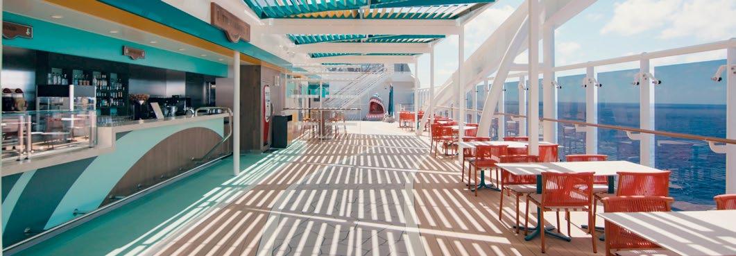 Outdoor part of the promenade with panoramic views, bars and the dry slide