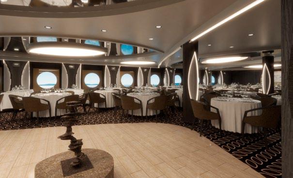 Multi-functional aft lounge for production shows and with panoramic sea view