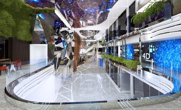 Indoor part of the promenade covered by an imposing LED sky screen with entertainment, shops and bars