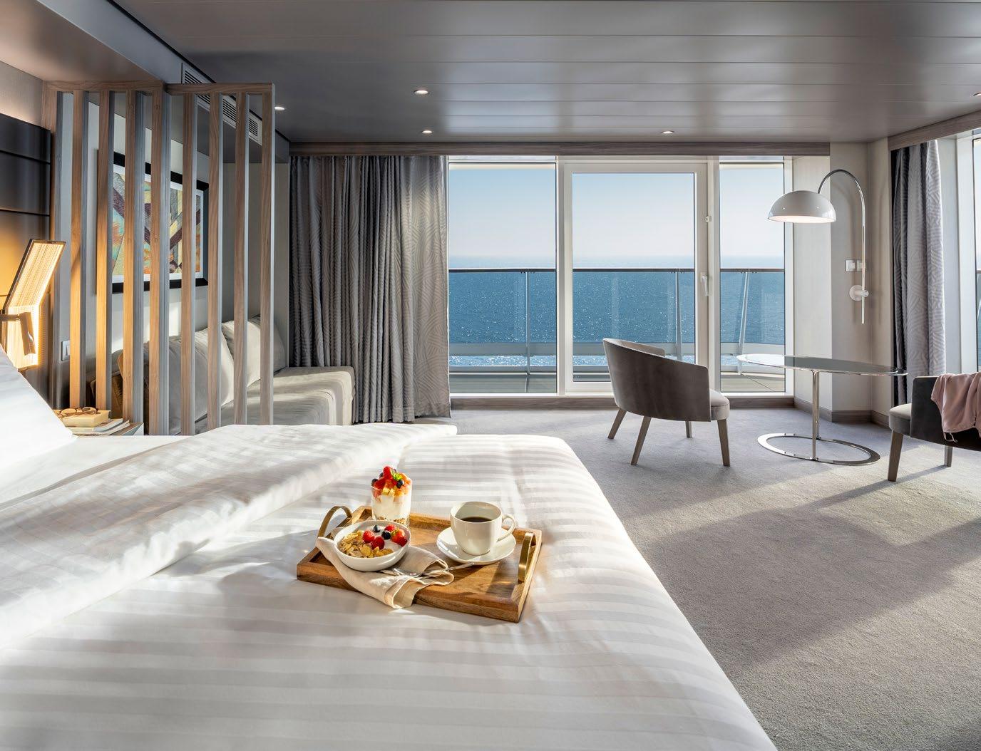 Welcome aboard your MSC cruise! Your vacation is about to start. Open the window in your thoughtful designed cabin, take in the stunning sea views, and listen to the sound of the ocean. Unpack just once, because the world is waiting to greet you! Whether it's a suite, a duplex apartment, or interconnecting rooms for families, every detail has been carefully considered to ensure you'll feel wonderfully rested and pampered. This relaxing haven of comfort and entertainment will be home for the next seven days. All settled in? It's time to take a peek at the daily program to find out what's in store. Oh, tonight's gala night, so head to the professional hair and nail salon or barbershop to get glammed up. Then, it's time to shine as you walk down the Swarovski staircase to start your journey in style. Finally, don't forget to order room service for a lazy breakfast in your cabin tomorrow morning.