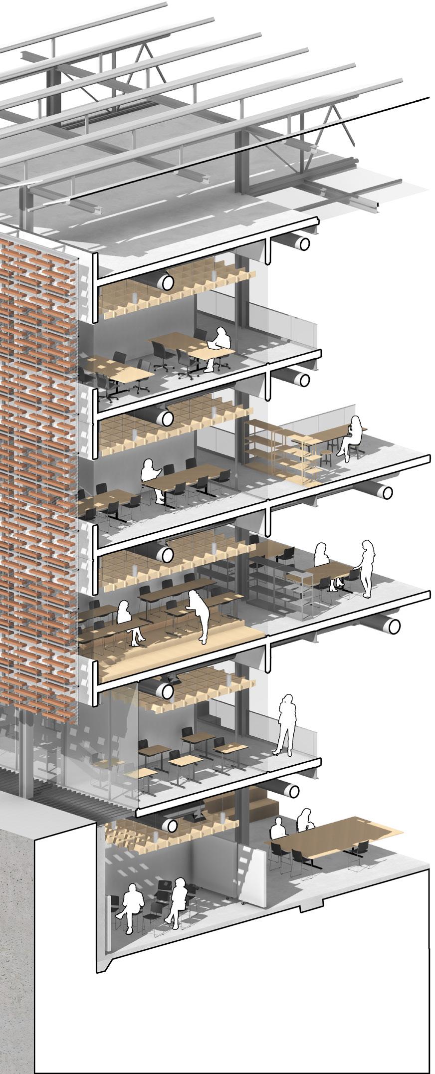 Intentional exposure of select structural components, emphasizing both their functional roles and their aesthetic impact. By drawing attention to primary load-bearing elements, secondary framing, and critical connections, the design celebrates the building’s tectonic identity, offering a tactile, visually engaging narrative that encourages a deeper appreciation of how the architecture functions.