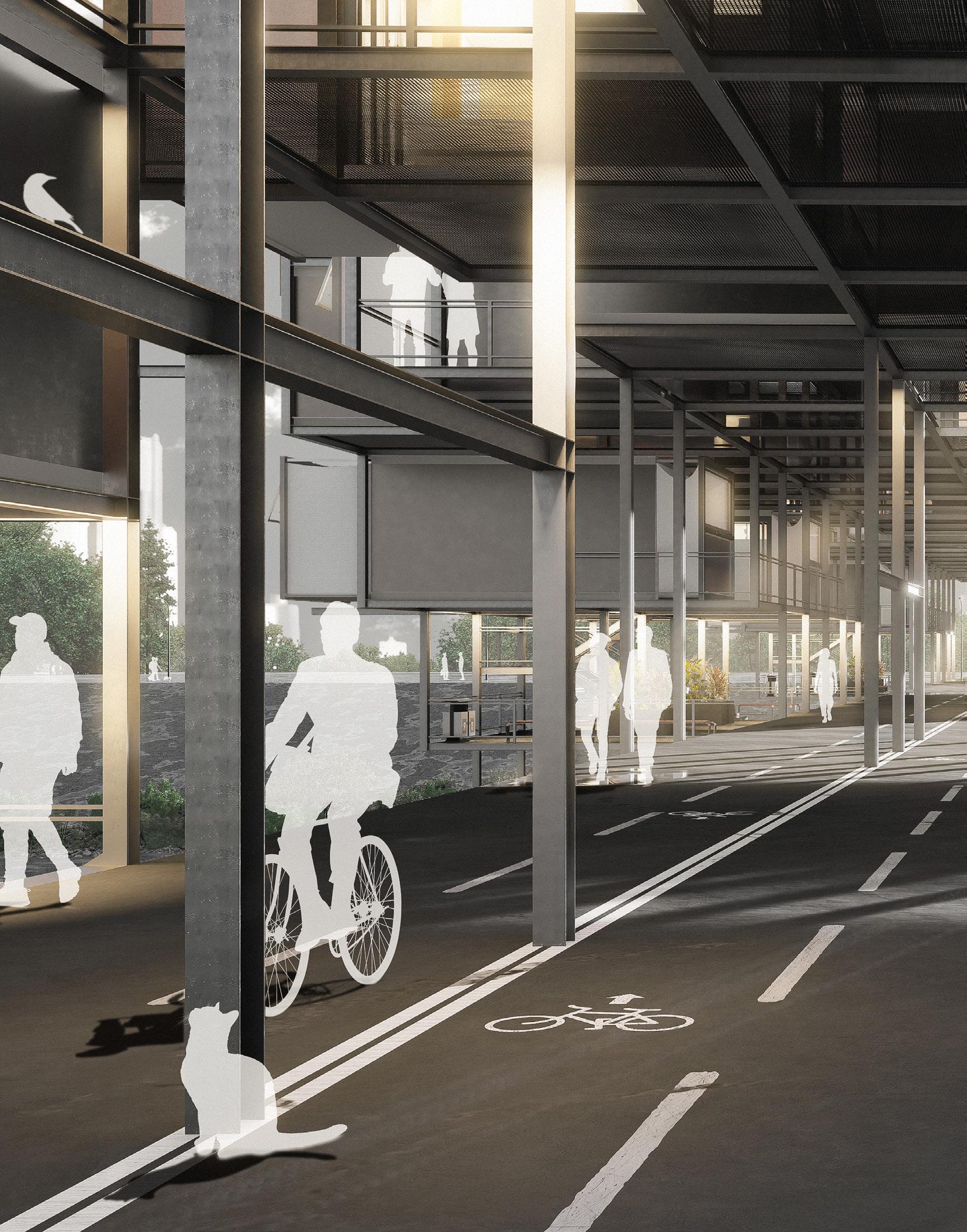 Building systems, tectonics, and assemblies form the project’s technical backbone. A hybrid concrete and mass timber framework provides both robustness and adaptability for the varied groundscape. Facade treatments balance ventilation, shading, and visibility, while integrated mechanical networks and circulation routes support the hovering bar and the open courts below. Each element—from material joinery to water management—works in unison, shaping a resilient, high-performance complex that merges function, sustainability, and architectural identity.