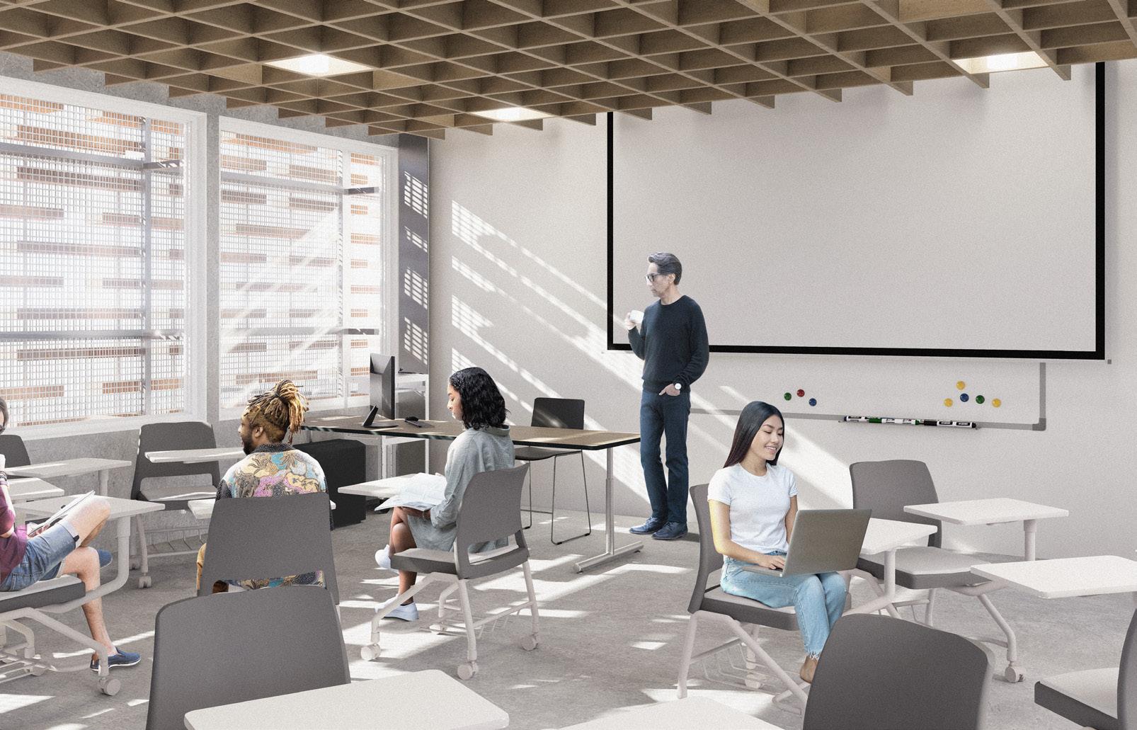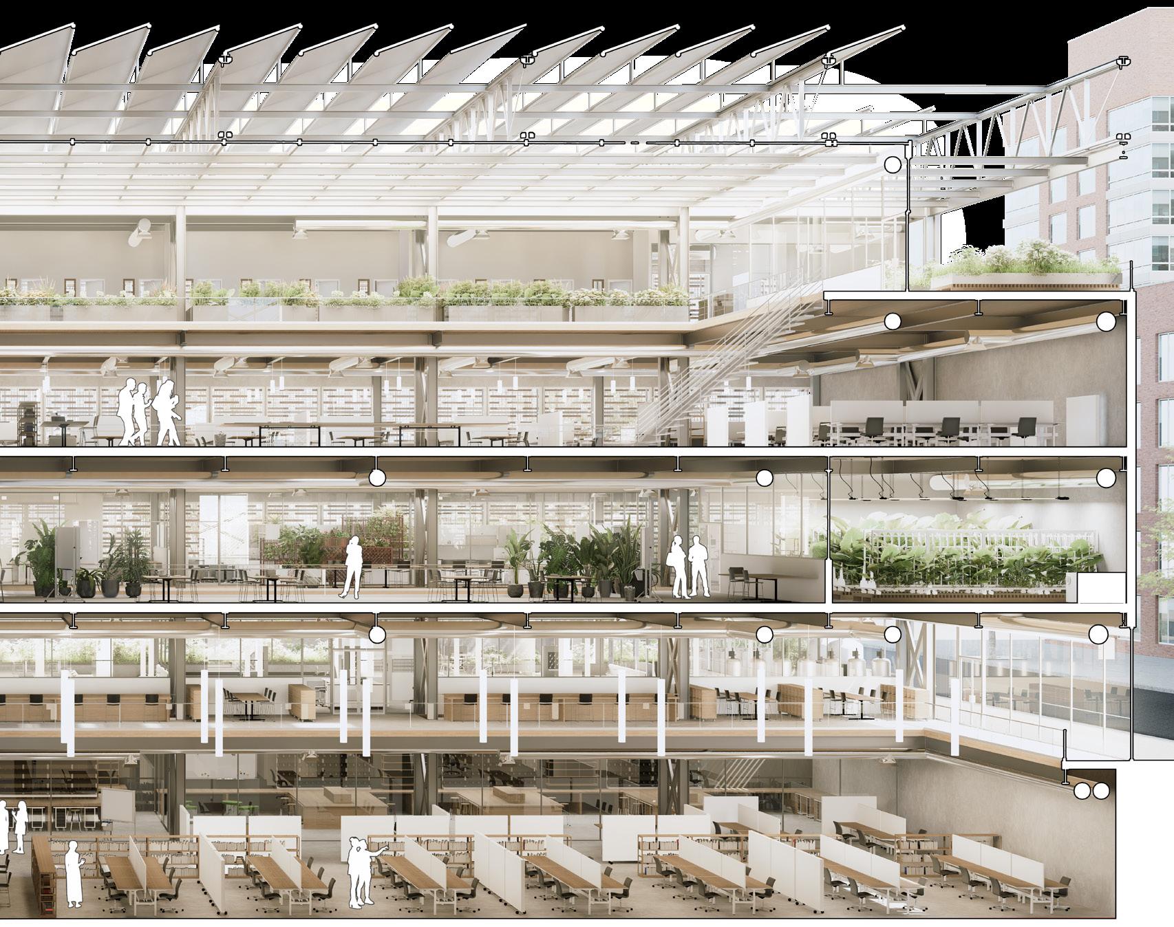 Interdisciplinary academic facility in Hell’s Kitchen, New York, designed to merge education, research, and community engagement. It serves as a hub for collaboration between environmental engineering, plant ecology, architecture, and landscape architecture, fostering innovation and sustainable practices. Prioritizing well-being, discovery, and integration.