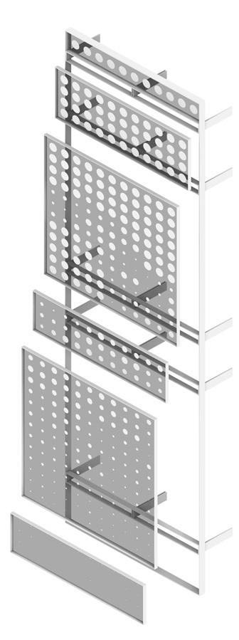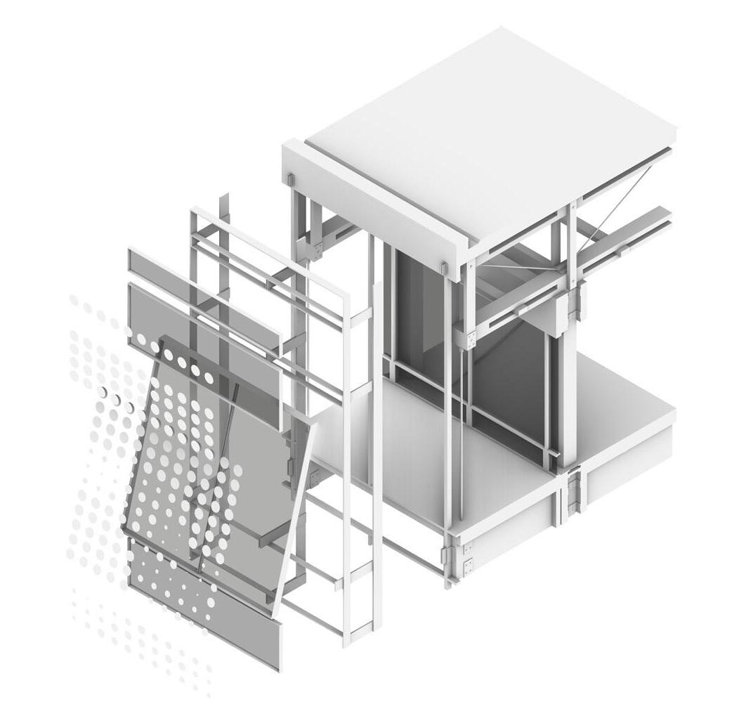 The primary steel structure extends outward to support a secondary system of mullions that frame the panels. Sandwiched between these panels, circular photovoltaic cells create a unique interplay of light, shadow, and energy generation. Merging functionality with aesthetic innovation, using advanced materials to reduce the energy footprint while enhancing its visual identity.