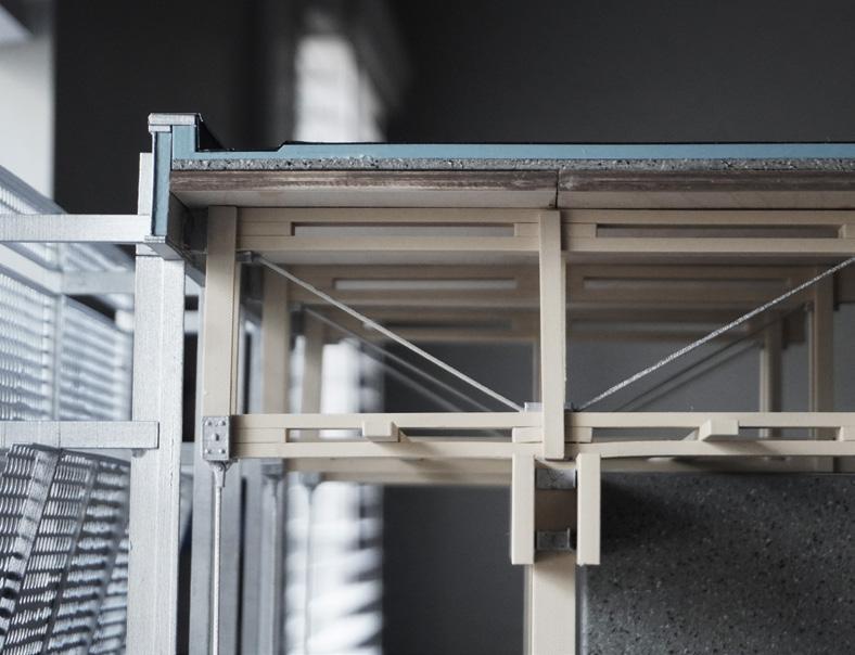 A sectional model was constructed in parallel with the main design process to clarify how connections, layers, and structural systems assemble. This model focuses solely on tectonic aspects—material junctures and assembly logic—to reveal their impact on performance and spatial quality. By visualizing different approaches in physical form, the model guided iterative exploration and suggested strategies for refinement in the final design.