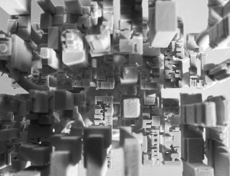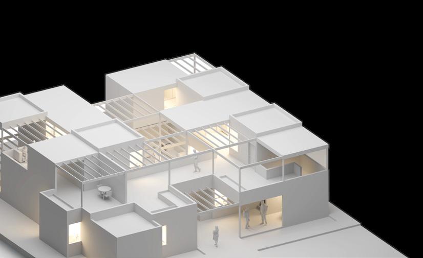 This physical model abstracts the existing singlefamily framework into a standardized module, then systematically layers these units to increase density. By redefining how space is added and shared, the resulting configuration moves beyond traditional notions of solitary living, suggesting new possibilities for communal interaction. At the same time, it invites a reevaluation of domestic boundaries, prompting a fresh perspective on spatial organization and social connectivity.