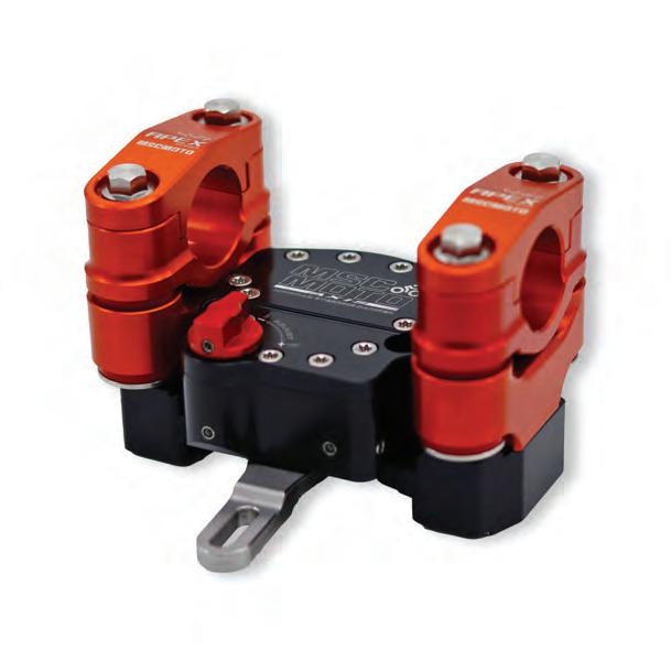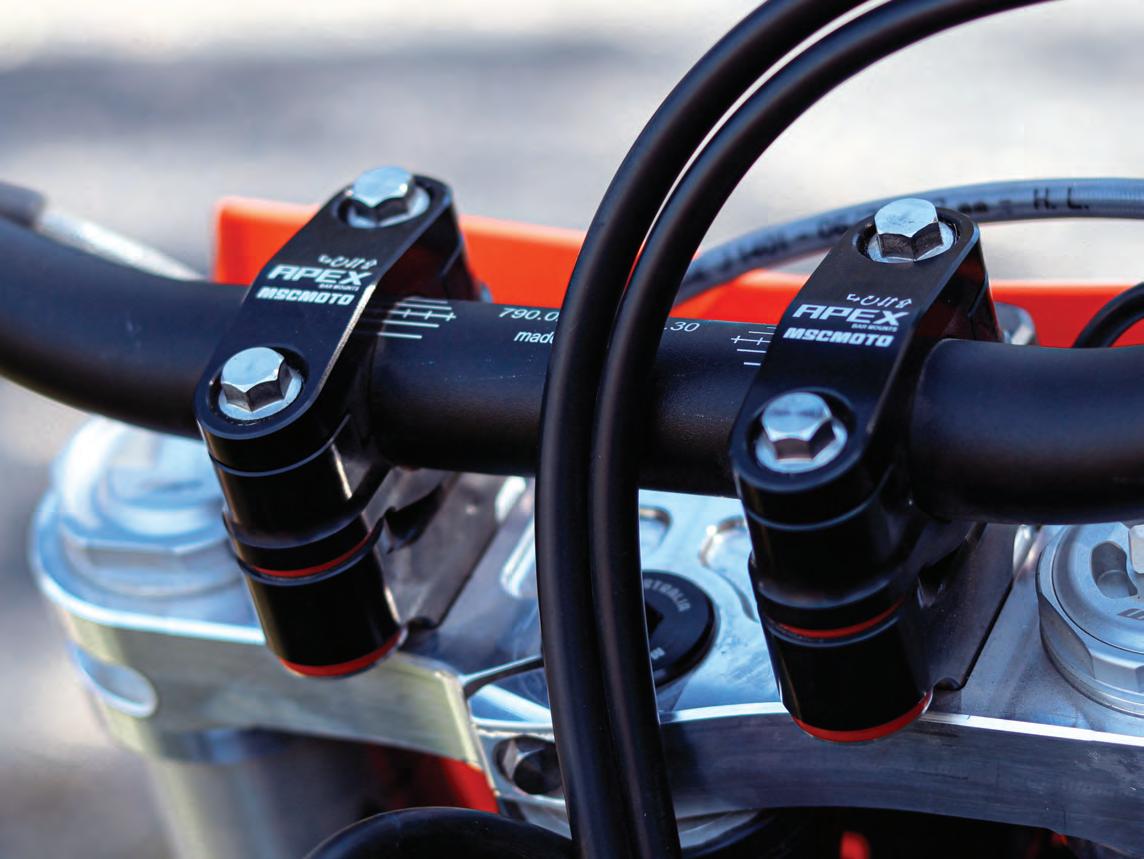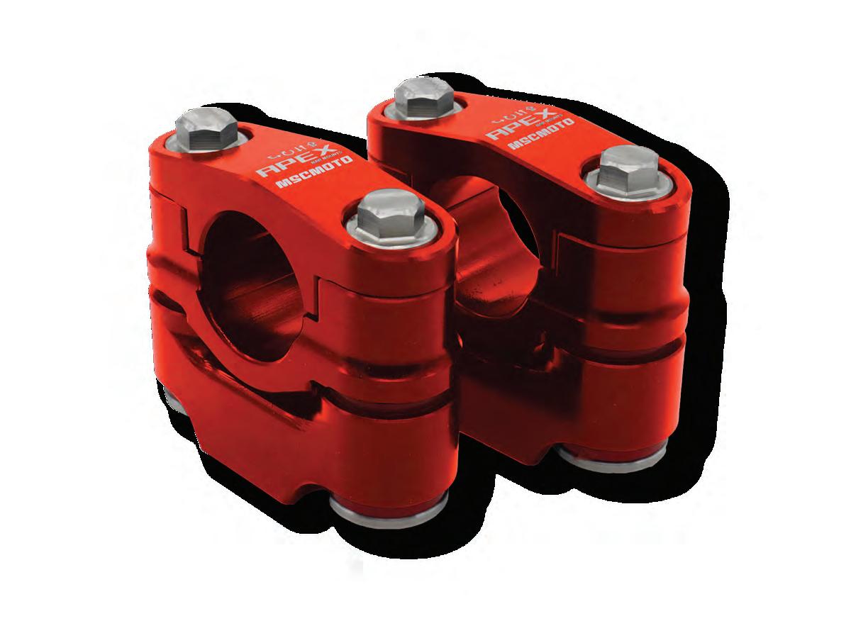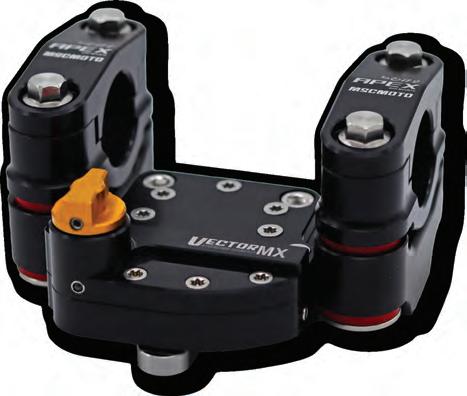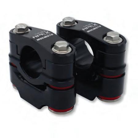 Thanks to years of rigorous testing and development in the hars h conditions that come with off-road riding and racing, MSC’s all-new Apex Dampened Handlebar Mount not only reduces vibration and aids in reducing hand fatigue and arm pump, but also eliminates twis ting in the event of an accident.