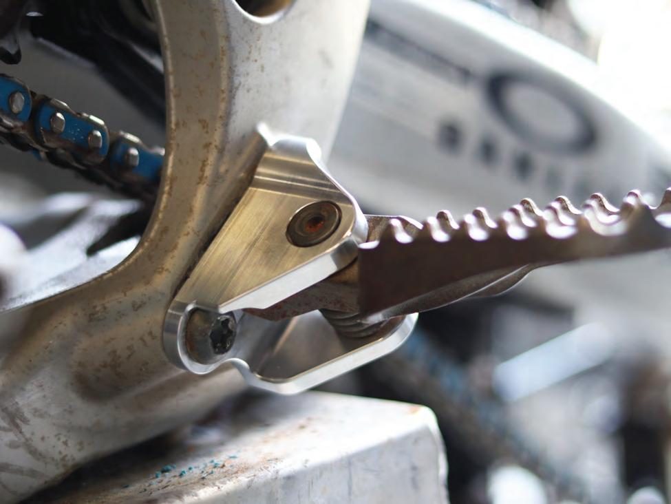 Footpeg-lowering mount that drops the footpegs down 7mm and positions them 5mm rearward to provide optimum body positioning to suit the Yamaha YZ450F ergonomics. Designed in Australia, CNC machined billet aluminium.