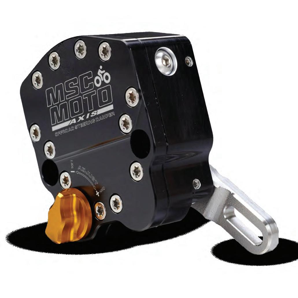 Ideal for riders tackling high-speed races such as Finke and Hattah, the AXIS steering damper is the latest in steering damper technology with its small compact design featuring 20 clicks of adjustment and Active Return to Centre (RTC) as well as all the standard MSC MOTO quality features like hardened steel long-lasting linkages and anodized billet construction.