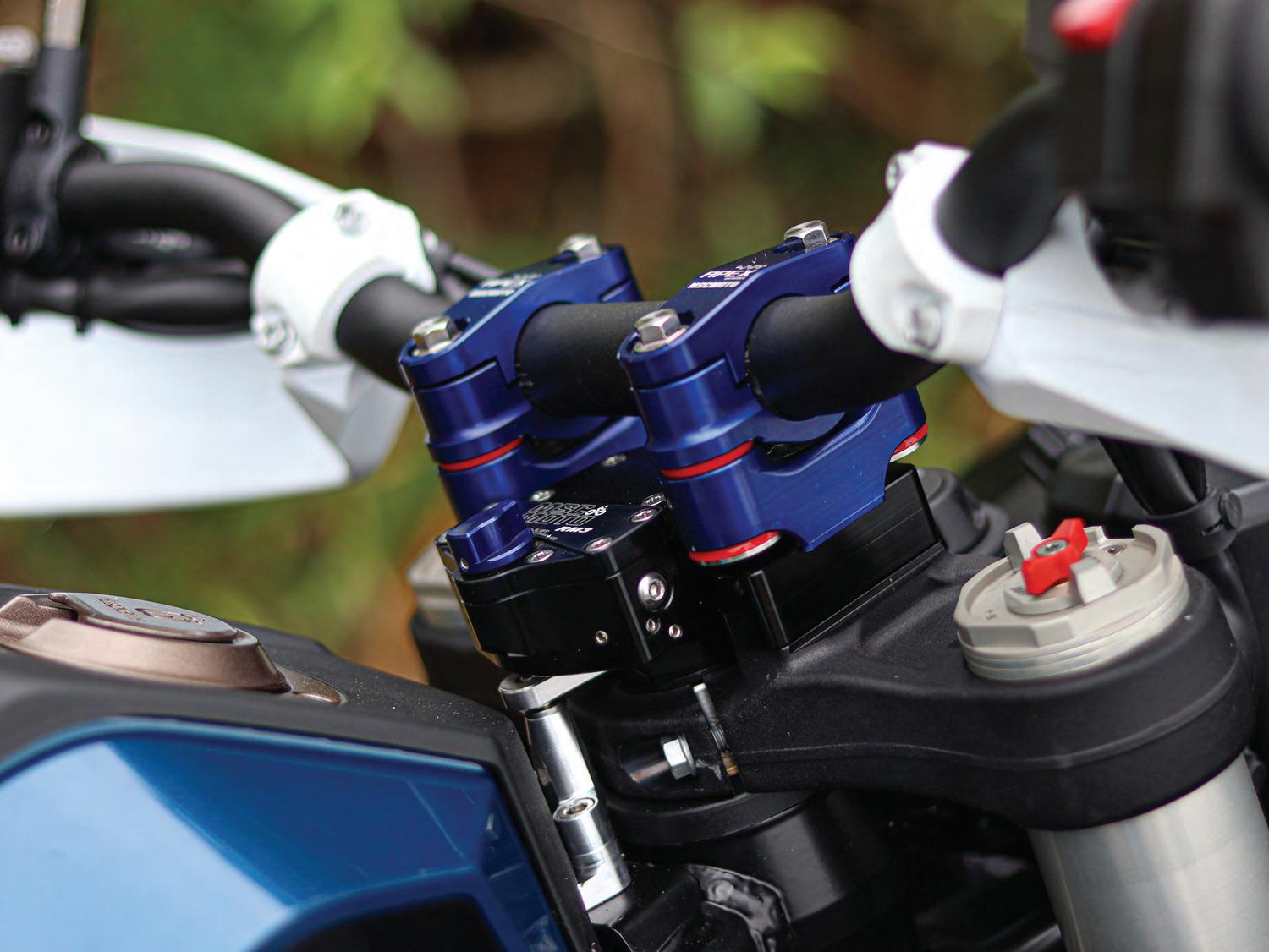 The adventure-specific RM3 steering damper kits are bolt-on and do not require you to make permanent changes to your standard bike. To allow for this the RM3 offers you a unit that’s physical dimensions, its height, width and depth, are slimline enough to fit under most handlebars with the bars raised a nominal amount.
